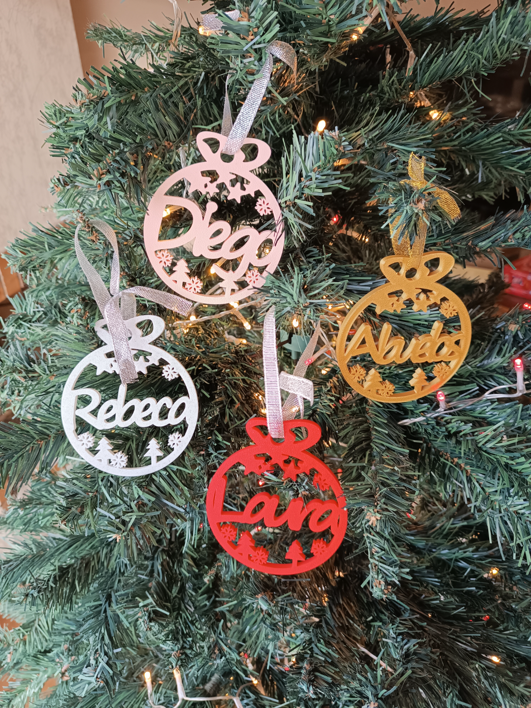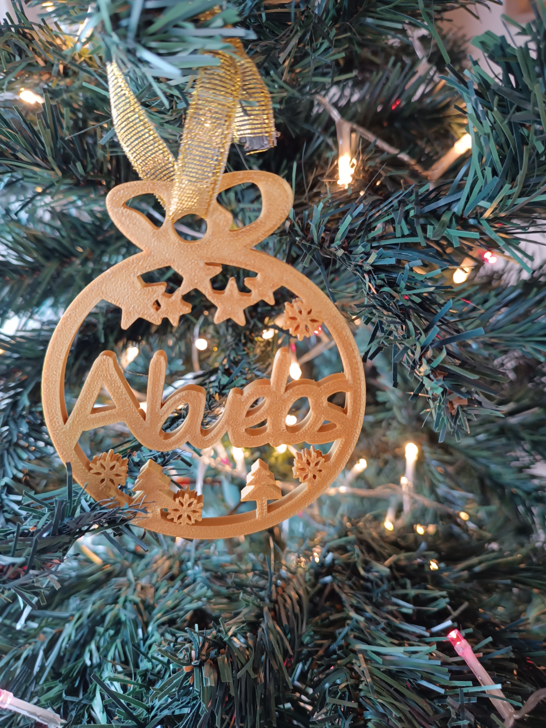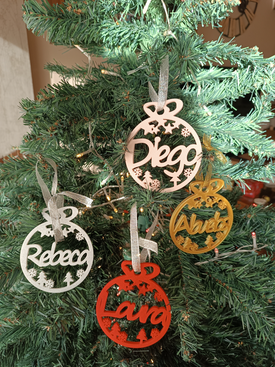 Adorno navideño personalizado. Sumá magia navideña a tu hogar con una pieza impresa en 3D por 3LD. Ligera, resistente y lista para lucirse en el árbol, la mesa o un rincón especial.