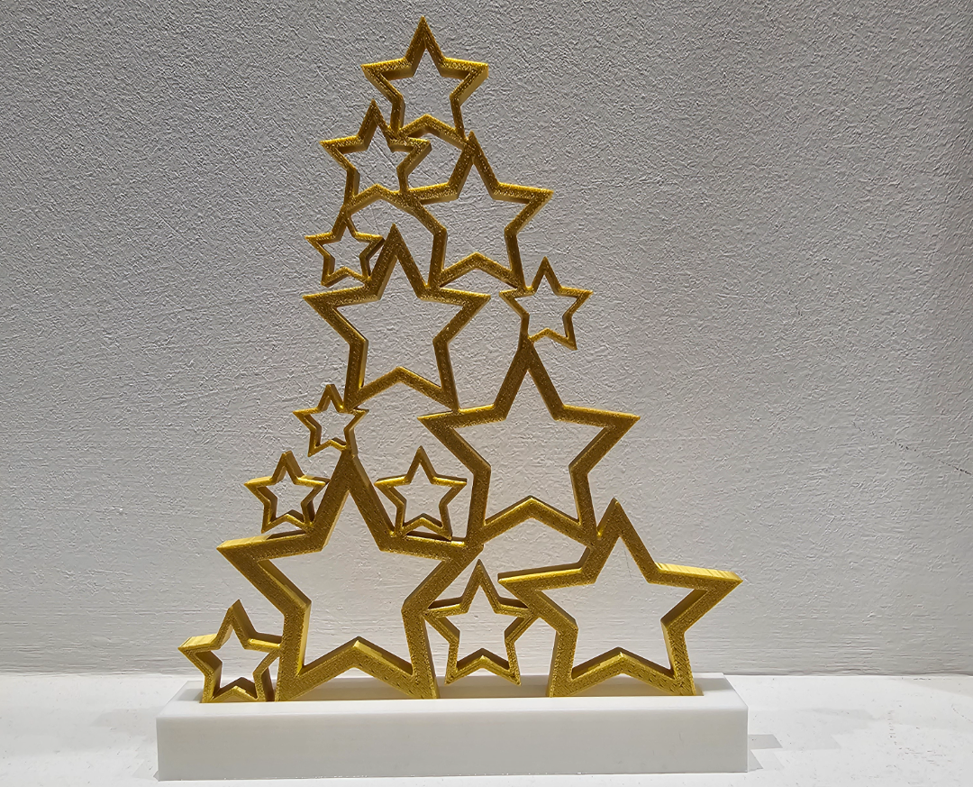 Árbol de estrellas navideño. Sumá magia navideña a tu hogar con una pieza impresa en 3D por 3LD. Ligera, resistente y lista para lucirse en el árbol, la mesa o un rincón especial.