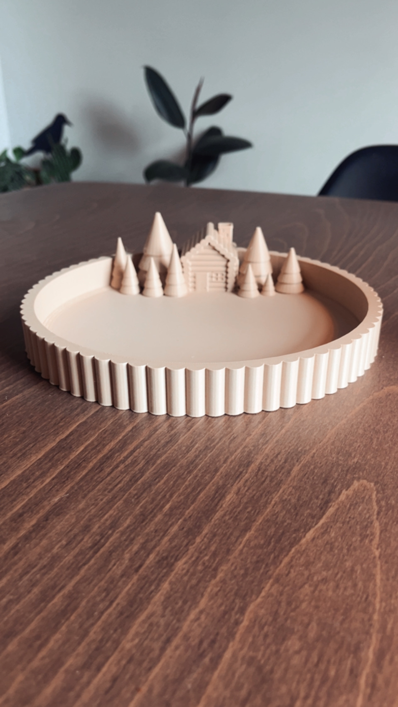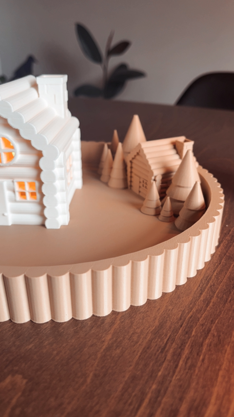 Bandeja de aldea navideña. Sumá magia navideña a tu hogar con una pieza impresa en 3D por 3LD. Ligera, resistente y lista para lucirse en el árbol, la mesa o un rincón especial.