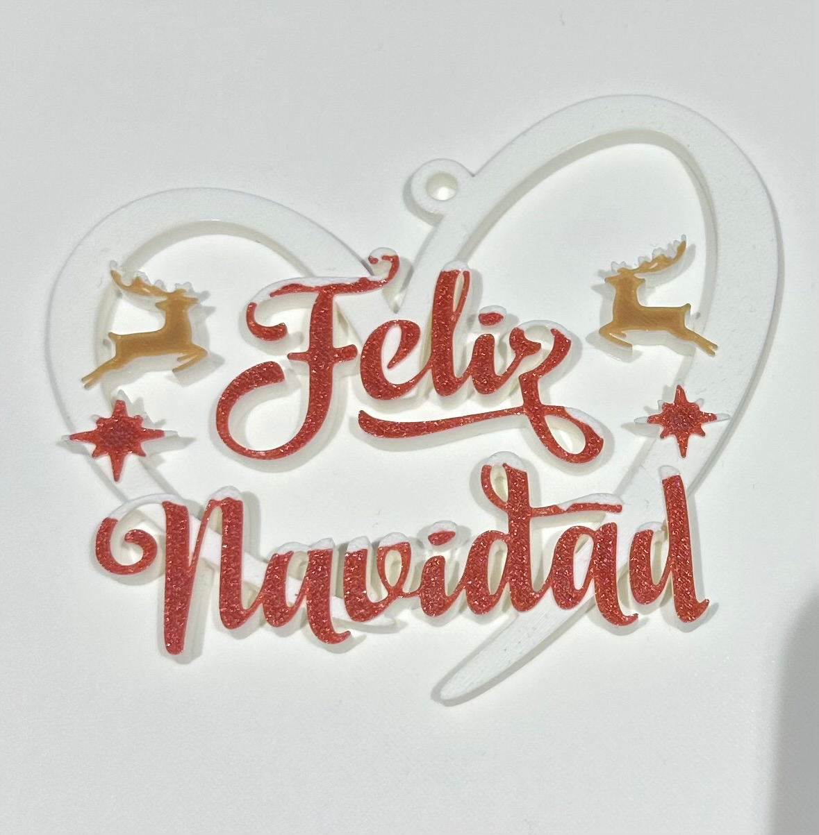 Bola de Navidad “Feliz Navidad”. Sumá magia navideña a tu hogar con una pieza impresa en 3D por 3LD. Ligera, resistente y lista para lucirse en el árbol, la mesa o un rincón especial.