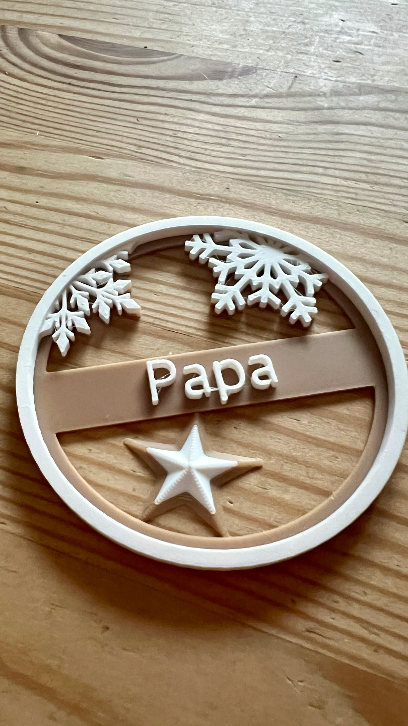 Etiquetas de regalo navideñas con nombres. Sumá magia navideña a tu hogar con una pieza impresa en 3D por 3LD. Ligera, resistente y lista para lucirse en el árbol, la mesa o un rincón especial.