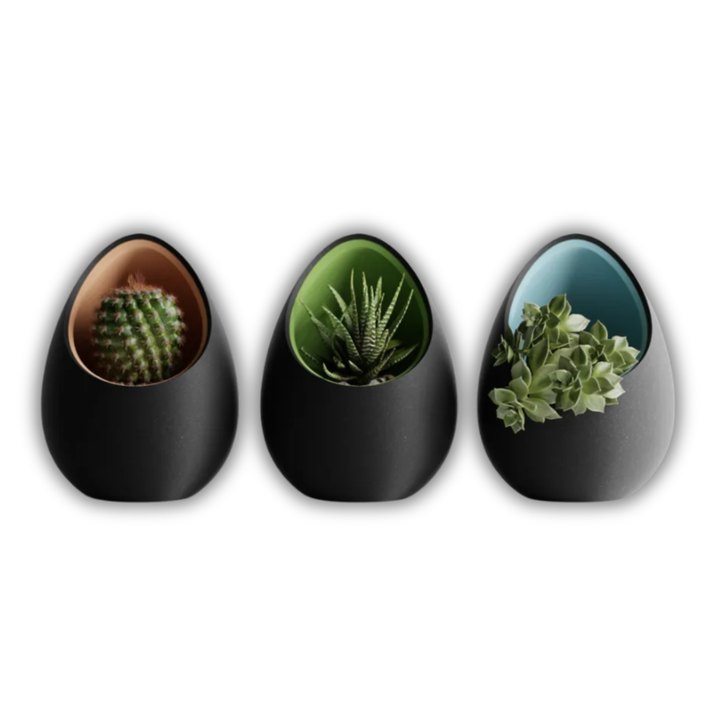 Maceta original impresa en 3D, perfecta para plantas pequeñas y decoración creativa.
