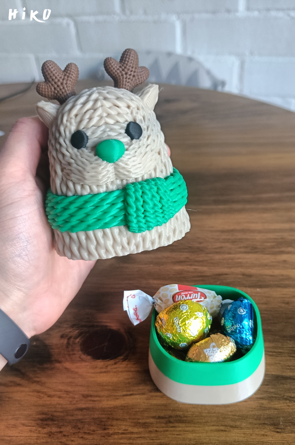 Reno – contenedor tejido navideño: decoración navideña impresa en 3D por 3LD.