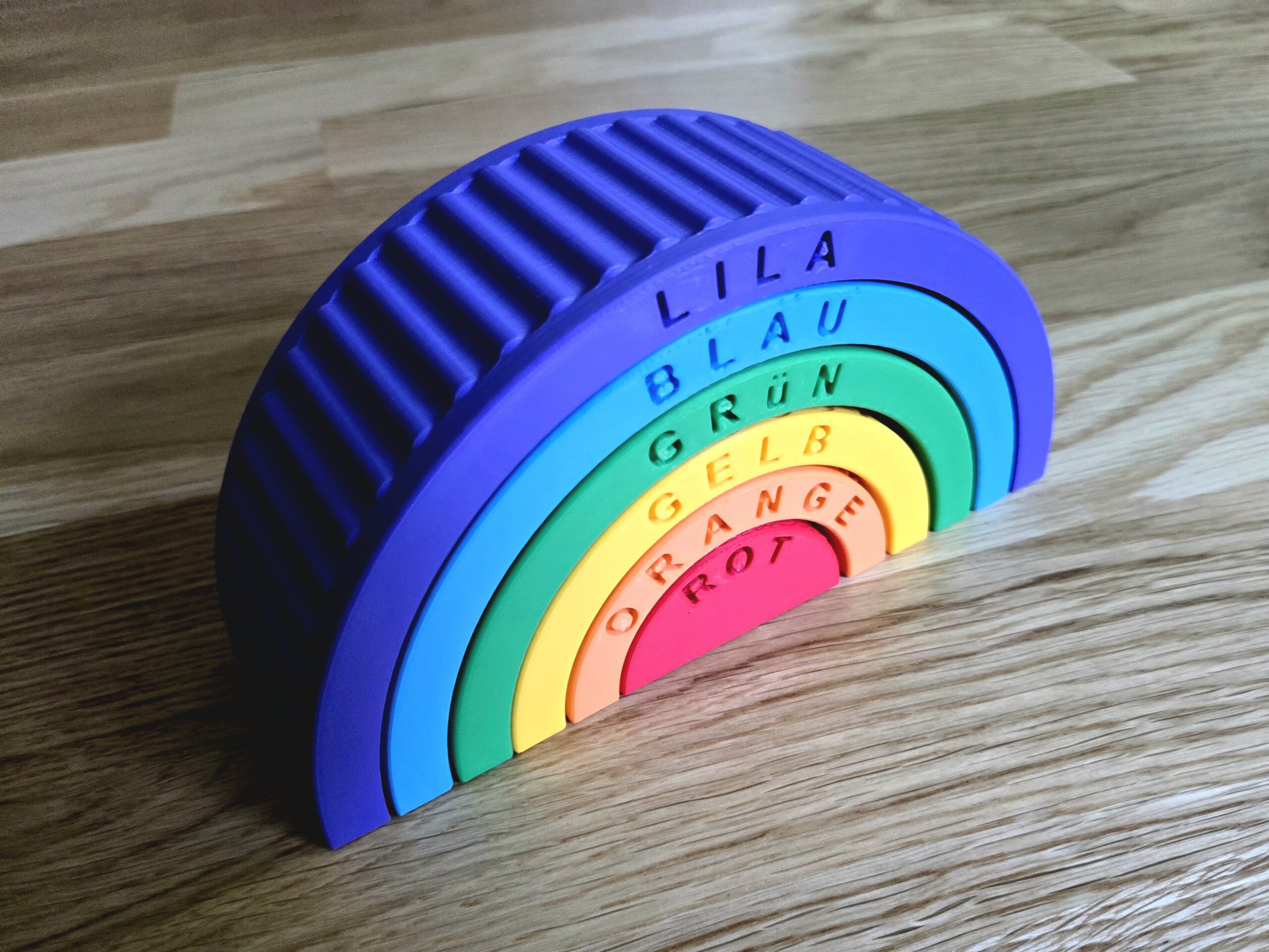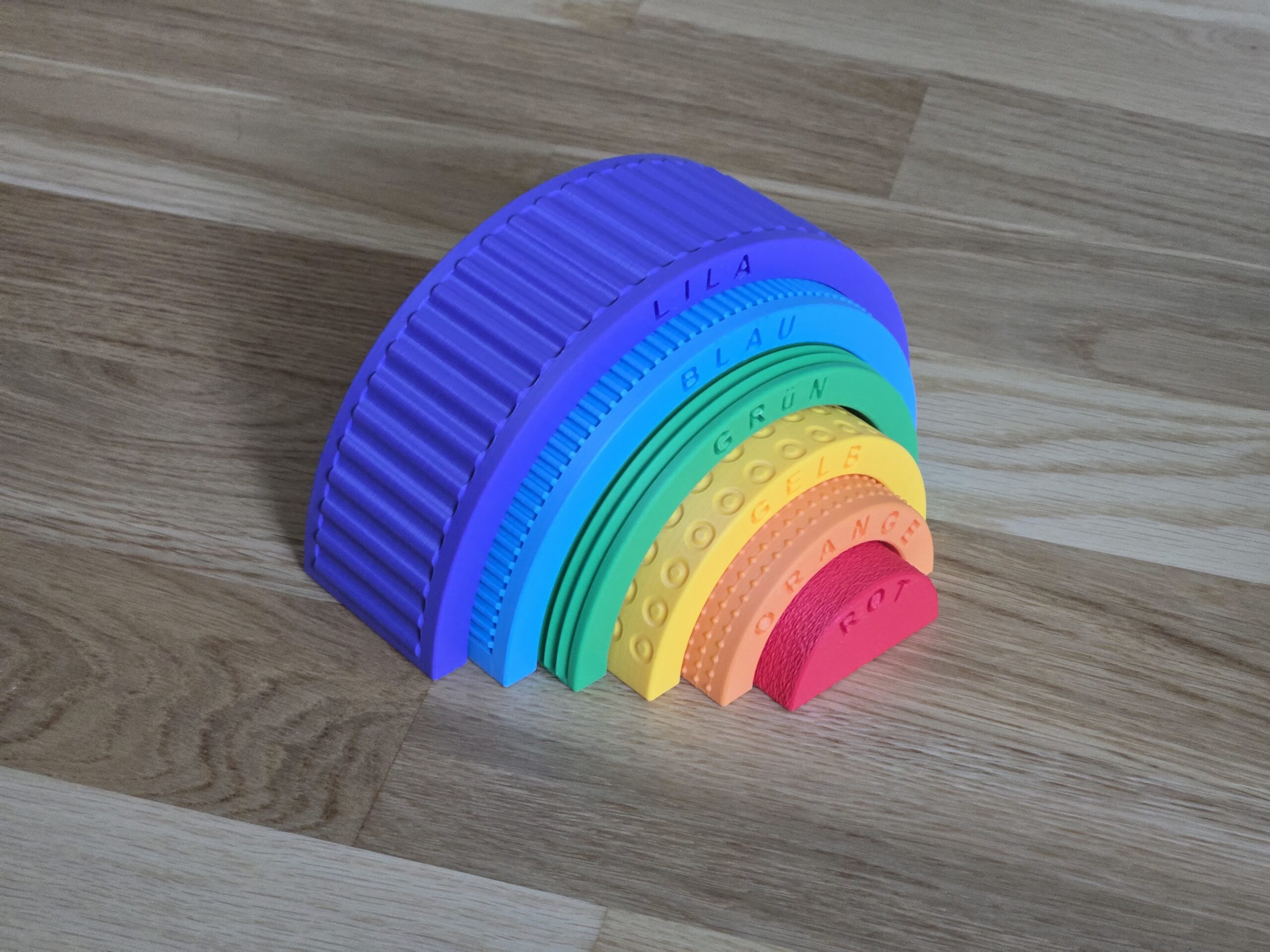 Rompecabezas Textura Arcoíris Montessori con Nombres de Colores 🌈🧩. Un recurso educativo que estimula la curiosidad, la coordinación y la imaginación a través del juego. Fabricado con impresión 3D por 3LD, combina diseño lúdico y durabilidad para acompañar el aprendizaje de los más chicos. Sos maker? descargá el stl acá: https://makerworld.com/en/models/1729807-montessori-texture-rainbow-puzzle-with-color-names