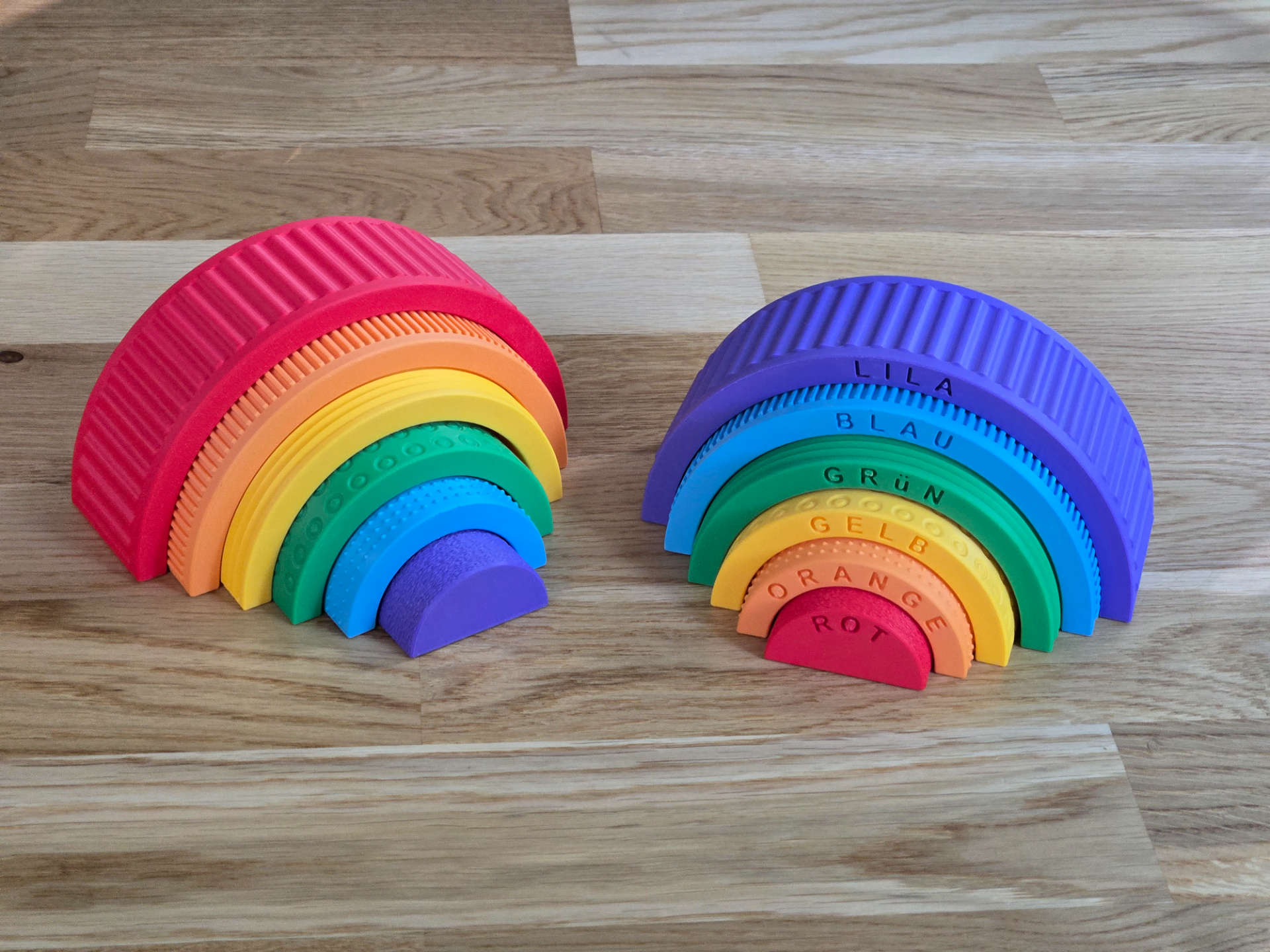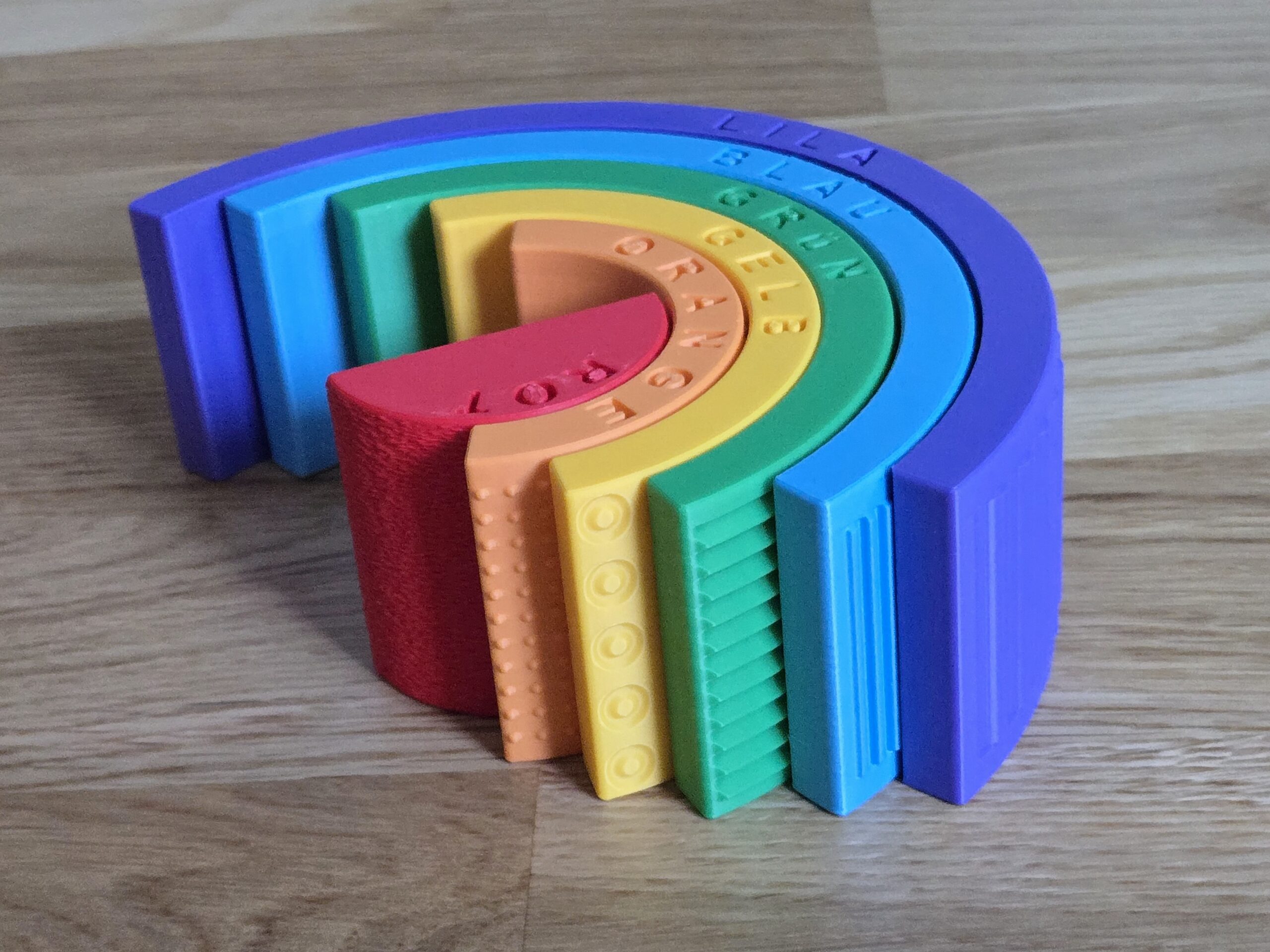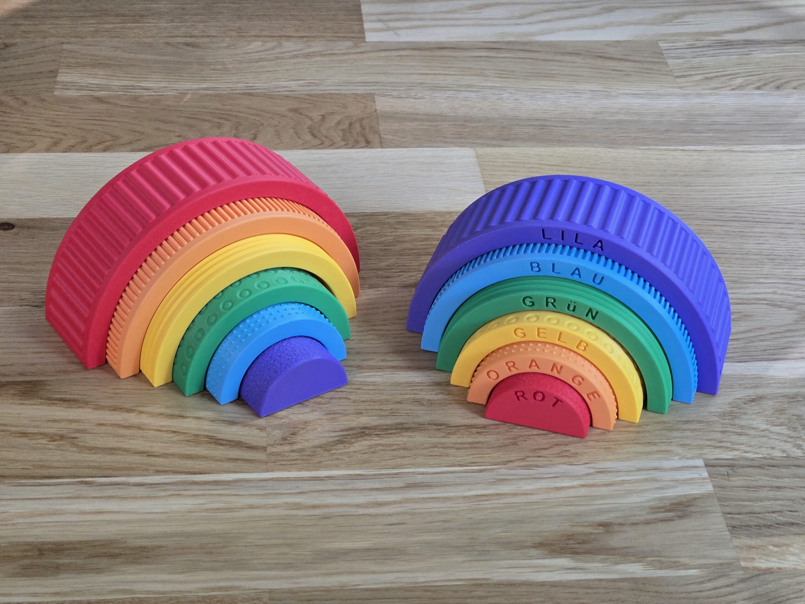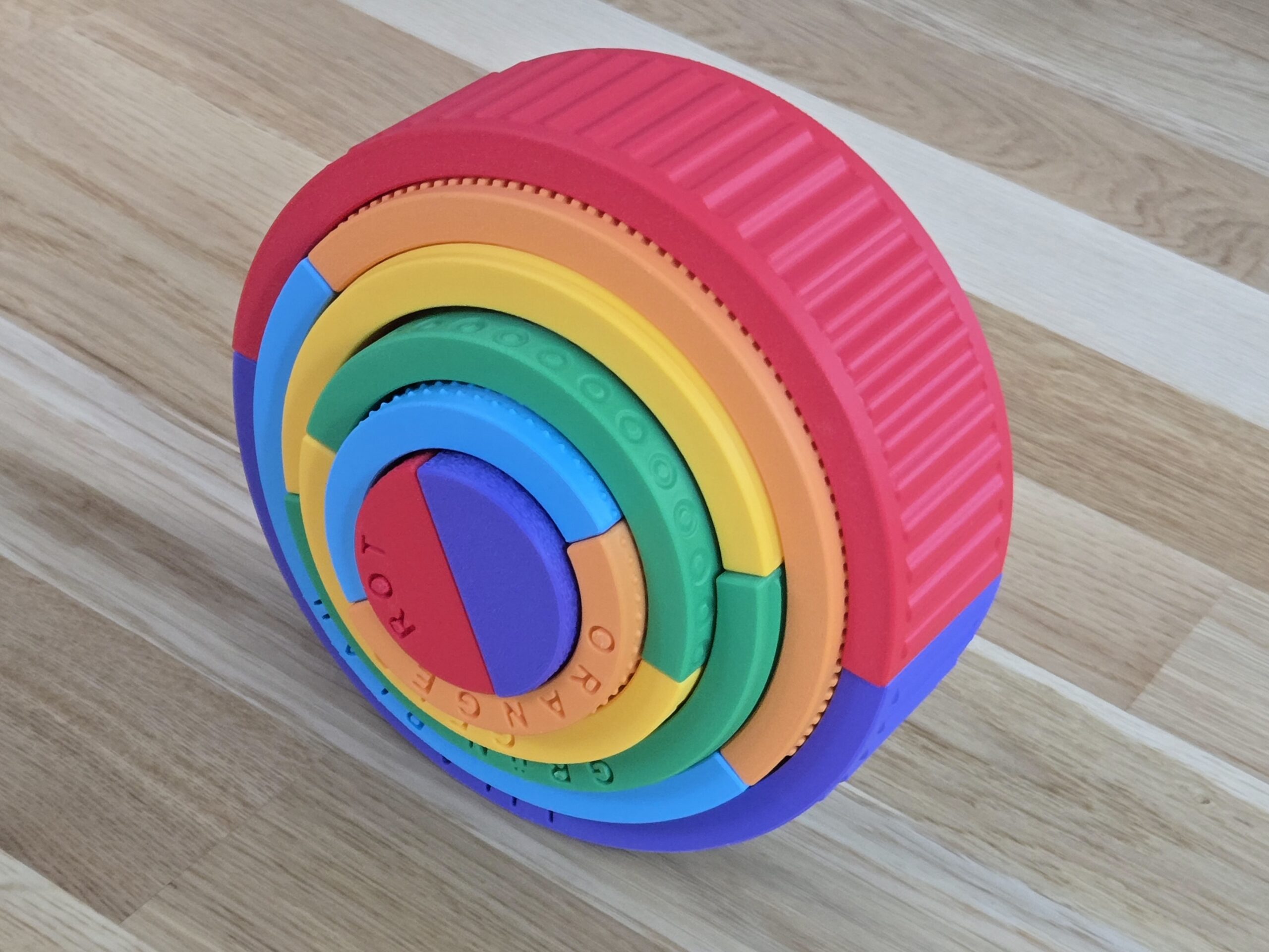Rompecabezas Textura Arcoíris Montessori con Nombres de Colores 🌈🧩: aprendizaje divertido y creativo, impreso en 3D por 3LD.