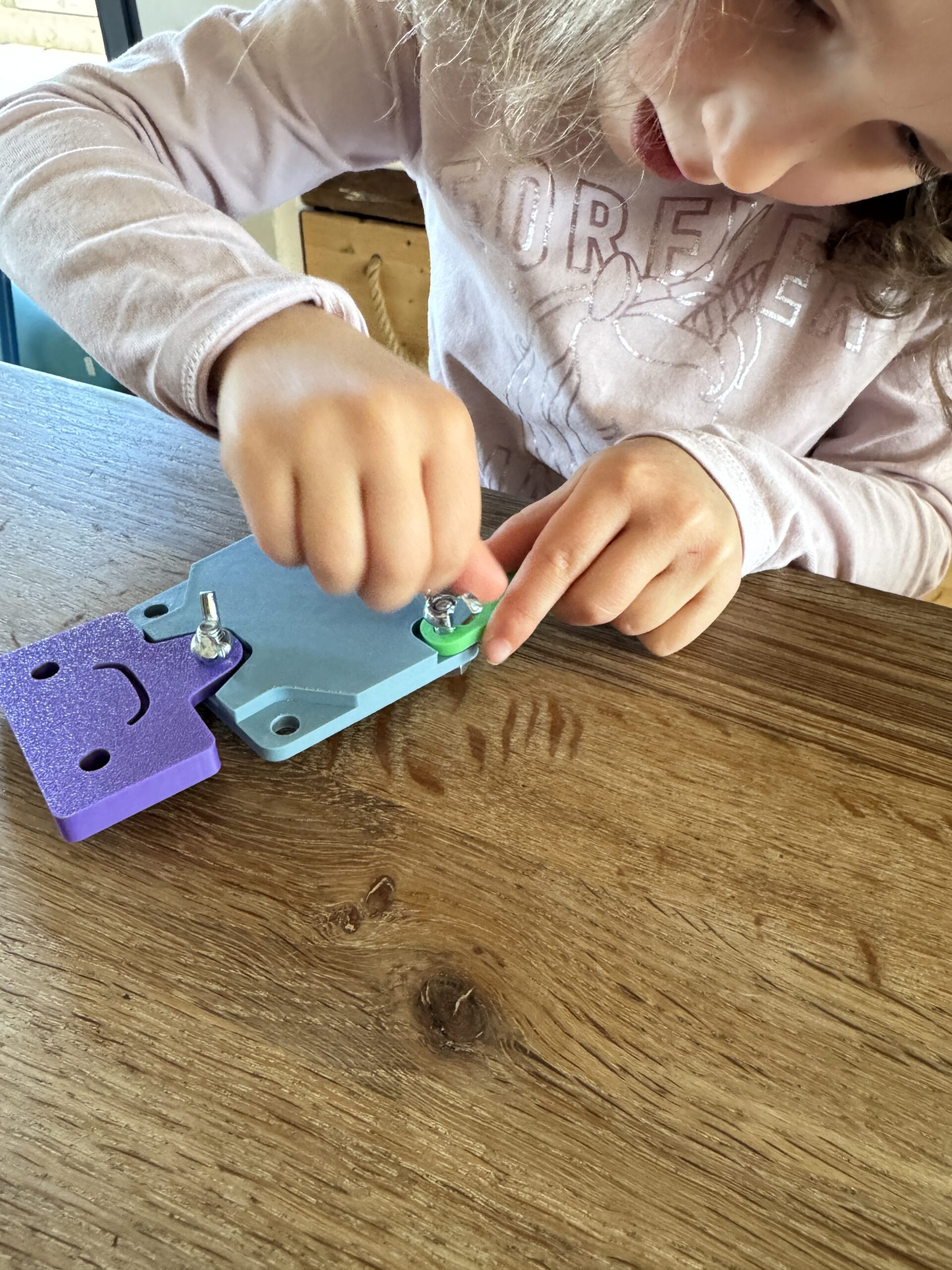 ✔ Material realista (tuercas / tornillos) → sensorial y mecánico